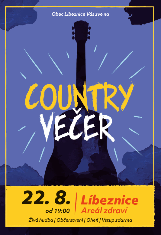 Country večer 2020 se uskuteční v sobotu 22. 8. od 19:00 v Areálu zdraví v Líbeznicích. Srdečně zveme všechny příznivce country na živou hudbu, občerstvení a oheň. Vstup zdarma.