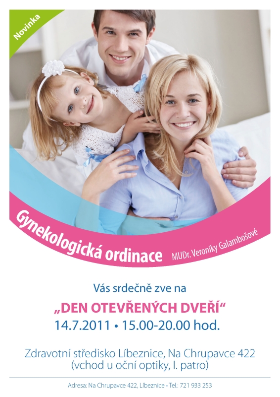 Líbeznice budou mít novou gynekologickou ordinaci. MUDr. Veronika Galambošová zve všechny k prohlídce rekonstruovaných prostor své ordinace ve Zdravotním středisku v Líbeznicích ve čtvrtek 14. července 2011 od 15 do 20 hodin.