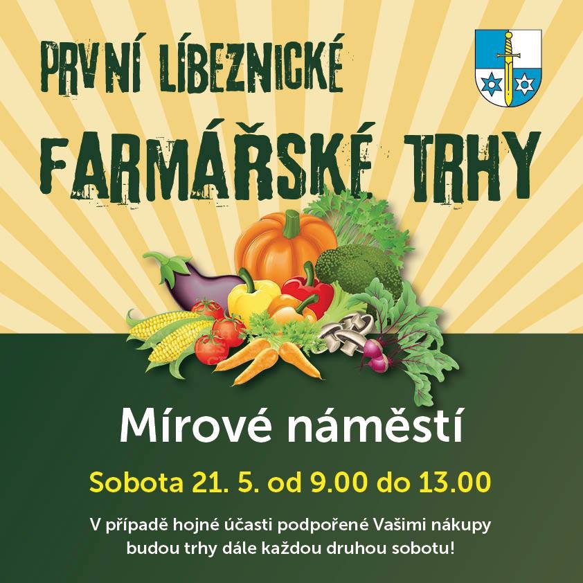 V sobotu 21. 5. 2016 od 9.00 do 13.00 budou na Mírovém náměstí probíhat první líbeznické farmářské trhy. V případě hojné účasti podpořené Vašimi nákupy budou trhy probíhat ve stejném čase každou druhou sobotu. Přijďte proto akci podpořit!