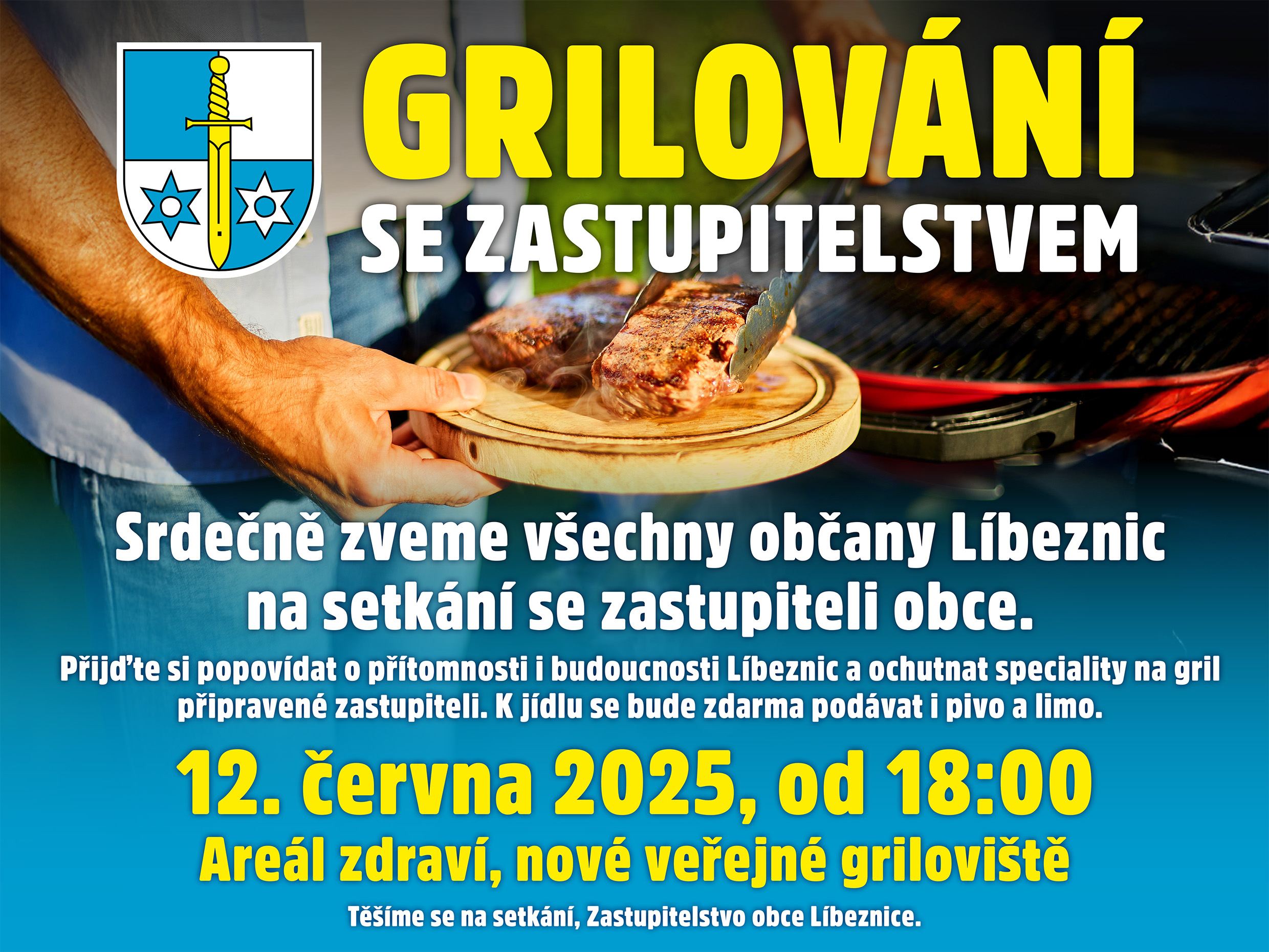 Zastupitelé obce Líbeznice vás srdečně zvou na setkání spojené s grilováním, které se uskuteční 12.6. 2025 od 18.00 na novém grilovišti v Areálu zdraví. Přijďte si popovídat o současnosti i budoucnosti Líbeznic a přitom ochutnat speciality na gril připravené zastupiteli. K jídlu se bude zdarma podávat i pivo a limo.