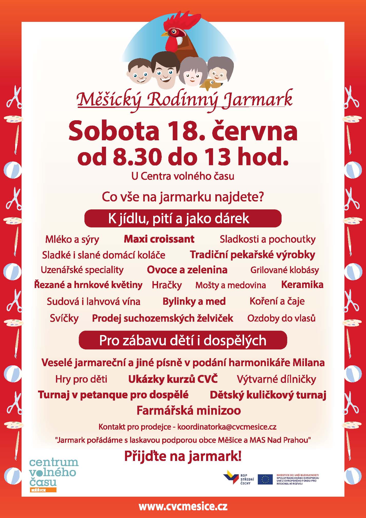 Měšický rodinný jarmark se koná v sobotu 18. června od 8:30 do 13 hodin u Centra volného času v Měšicích.