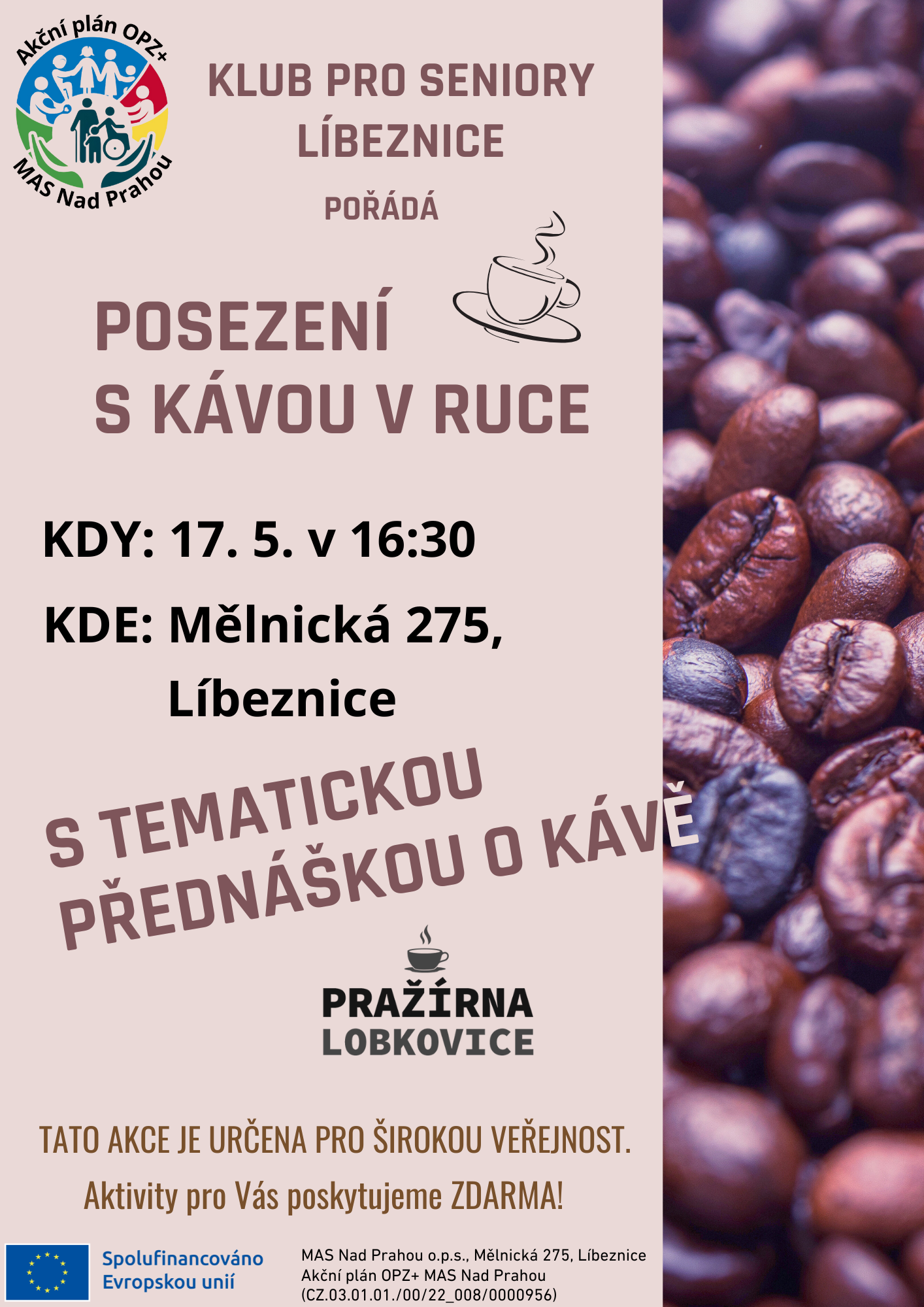 Klub seniorů Líbeznice vás srdečně zve na posezení s kávou v ruce s tematickou přednáškou o kávě. Akce se koná 17.5. 2024 od 16.30 hodin na adrese Mělnická 275, Líbeznice.