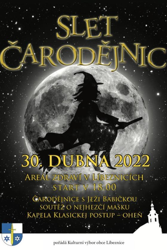 Obec Líbeznice vás srdečně zve na letošní slet a pálení čarodějnic. Akce se uskuteční v sobotu dne 30.4. 2022 od 18.00 v Areálu zdraví. Součástí akce bude soutěž o nejhezčí čarodějnickou masku a vystoupení kapely Klasickej postup.
