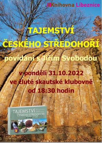 Obecní knihovna vás srdečně zve na diskusi s Jiřím Svobodou o přírodních krásách a historických zajímavostech Českého středohoří dne 31.10. 2022 od 18.30 hodin. Jiří Svoboda je autorem knihy Tajemství Českého středohoří. Akce se uskuteční ve skautské klubovně v hale Na Chrupavce.