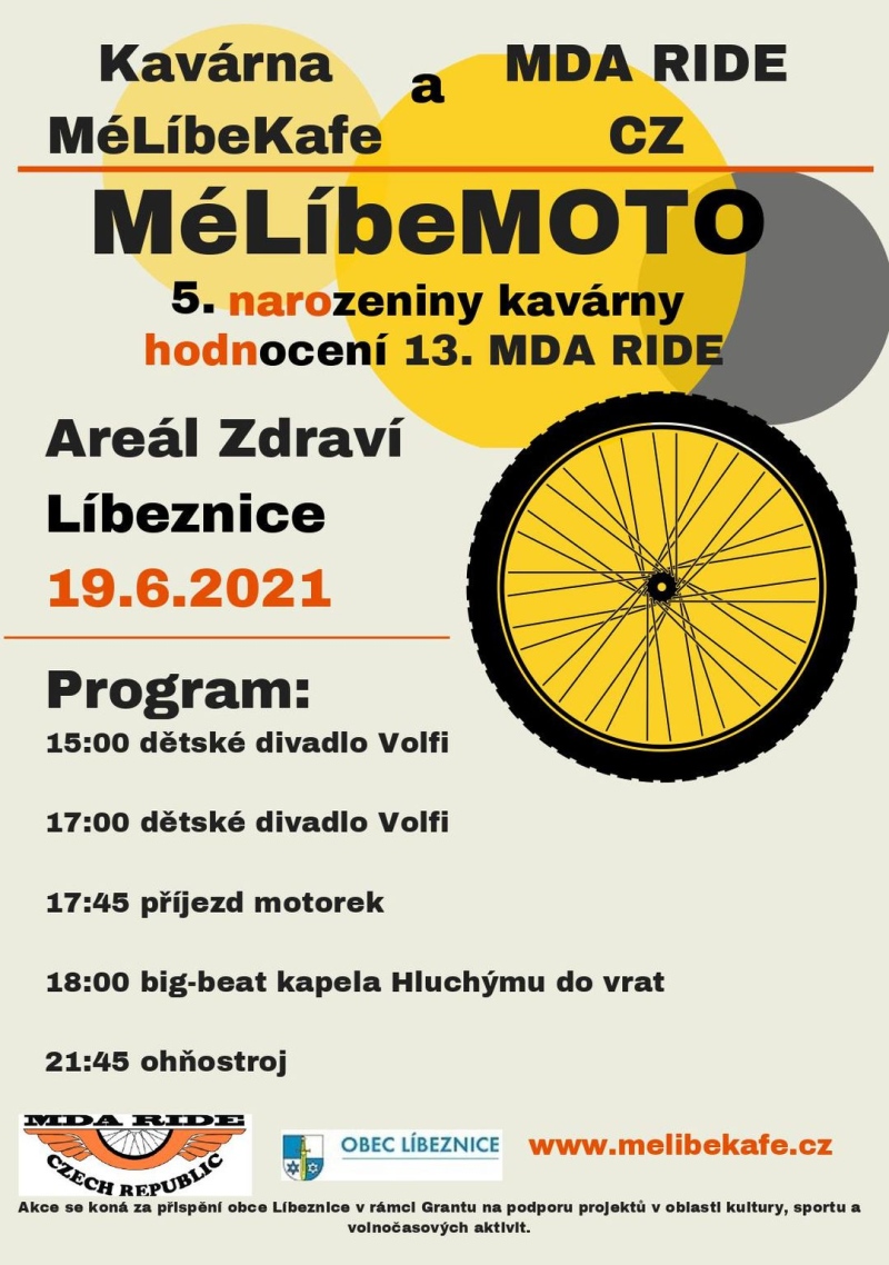 Kavárna MéLíbeKafe zve děti i dospělé na oslavu svých 5. narozenin spojených s příjezdem motycyklů MDA RIDE. Akce se uskuteční v sobotu 19.6. od 14.00 v Areálu zdraví.