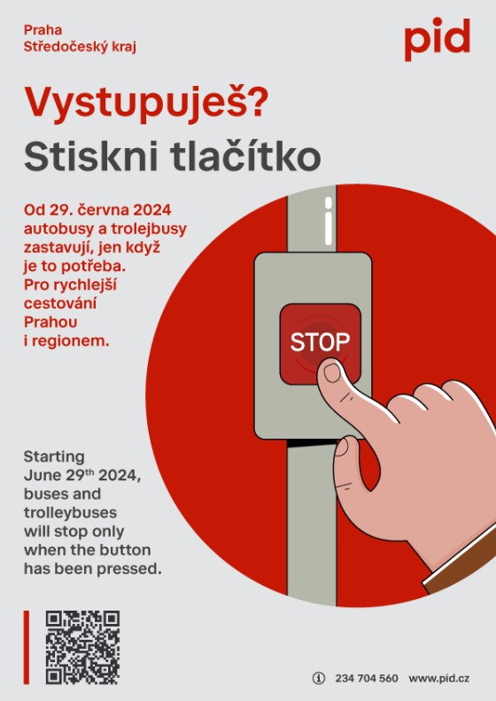 V Praze i Středočeském kraji bude od 29. června 2024 sjednocen charakter všech autobusových a trolejbusových zastávek PID. Pro výstup v každé zastávce bude potřeba stisknout dostatečně včas tlačítko ve voze. Pro nástup postačí stát na zastávce tak, aby byl cestující viděn řidičem. Mávat již není potřeba.