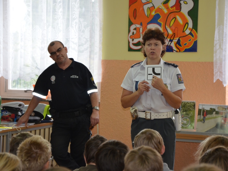 V jídelně základní školy probíhala společná přednáška inspektorky dopravní policie ČR a příslušníka líbeznické obecní policie o správném chování v silničním provozu. Součástí bylo poznávání dopravních značek i ukázka správného vybavení jízdního kola. Také tady se hovořilo o modelových krizových situacích a jejich řešení.