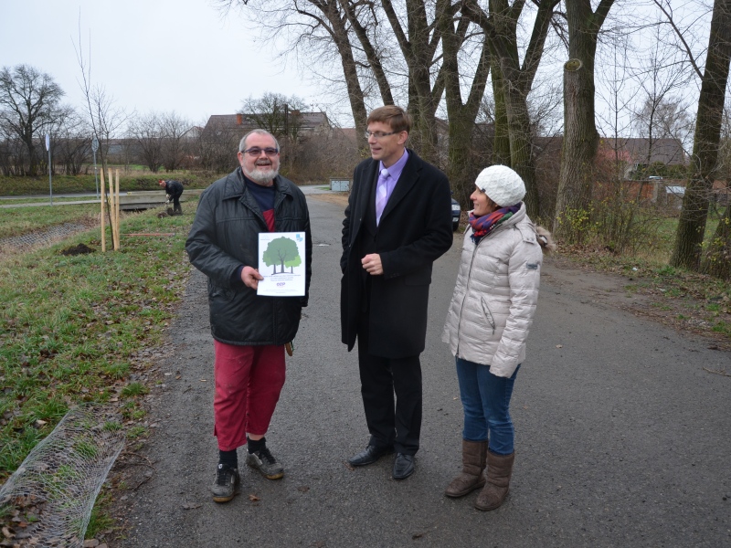 Pracovníci Oborové zdravotní pojišťovny včetně generálního ředitele Ladislava Friedricha vysázeli v Líbeznicích nových 19 lip srdčitých. Dokončili tak alej na Beckov.