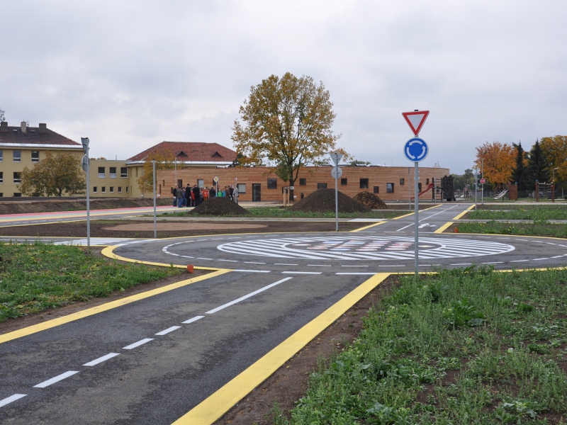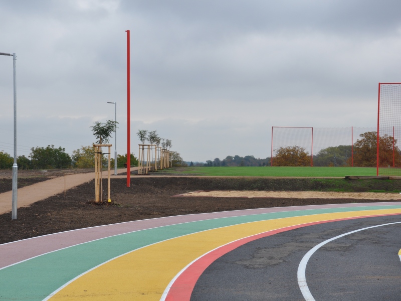 Dopravní hřiště umístěné uvnitř atletického oválu