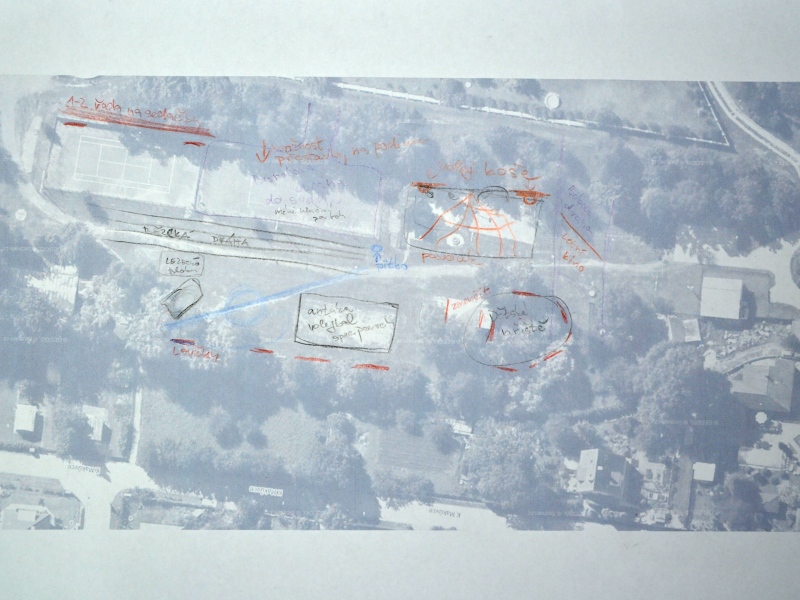 Další část programu večera potom tvořily ukázky nejrůznějších skateparků v Čechách i v zahraničí a také příklady povedených venkovních fitcenter či work outových hřišť. To všechno měla být inspirace pro samotnou práci ve skupinkách. Každá z nich si vzala jednoduchou ortofotomapu areálu zdraví a začala do ní kreslit své plány. Na závěr pak každá skupinka své dílo před ostatními komentovala.