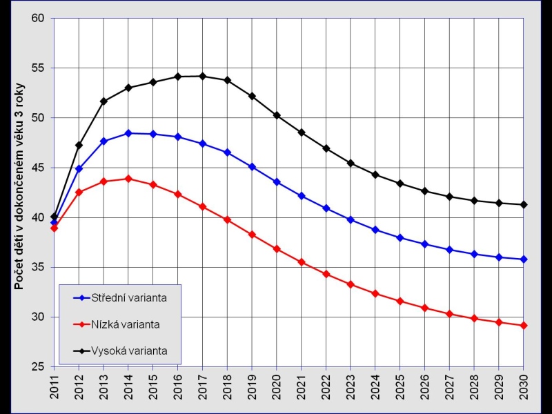 Obrázek 2: Očekávaný vývoj počtu dětí v dokončeném věku 3 roky