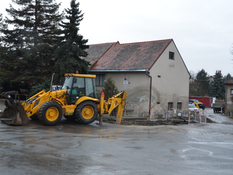 Zatímco na jedné straně technické služby pracovaly na odvodnění, za druhým rohem úřadu pokračoval výkop kanalizace. Stavební firma si lámala zuby (bagru) na již nefunkční ocelové jímce, která stojí v cestě další přípojce. "Výkop bude nutné posunout do parku před úřadem. Ukazuje se to jako jediné možné řešení. V dalších dvou týdnech se tak cesta na úřad trochu zkomplikuje. Budovu bude nutné obcházet kolem nové policejní služebny," upozorňuje první místostarosta obce František Závorka.