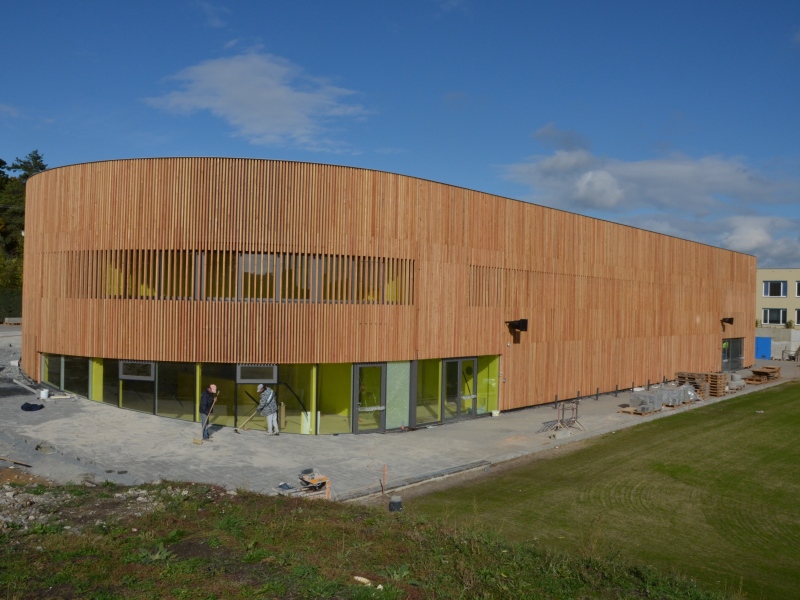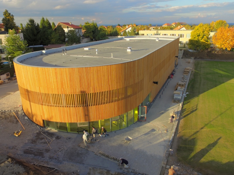 Napínavou část celého příběhu nové tělocvičny netvořila samotná stavba, ale už před tím také výběrové řízení na zhotovitele celé stavby. V konkurenci 10 společností zvítězila stavební firma JMA Group s.r.o. Ta poprvé kopla do země na začátku listopadu loňského roku. Průběh stavby pak bylo možné sledovat každý den. Divácky nejatraktivnější byla určitě stavba dřevěné konstrukce celé stavby v průběhu února letošního roku.