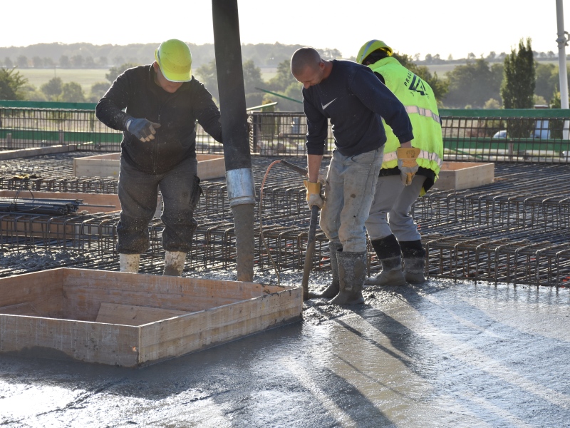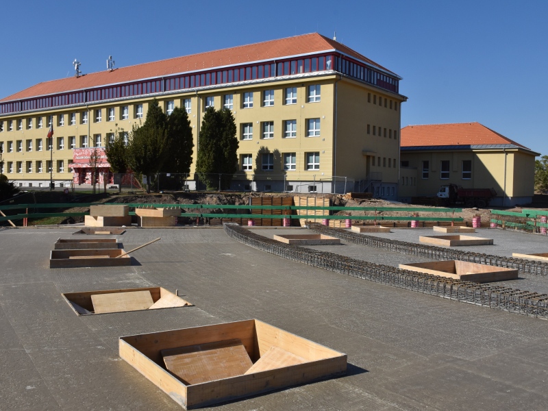 Stavba nové budovy školy pokračuje rychlým tempem. Dva měsíce po zahájení prací je hotová první čtvrtina stropní desky. Chystá se betonování opěrné zdi u paty hlavní budovy školy. Kompletní monolitická část stavby musí být dokončená do poloviny prosince.Harmonogram prací na stavbě školy má jasný cíl v podobě otevření prvních 12 tříd v září příštího roku. Od zahájení stavby se tak velmi pečlivě sleduje i postup prací. K žádnému zdržení zatím nedošlo. Dokončené jsou všechny základové pasy s výjimkou založení hlavní opěrné zdi u paty staré budovy školy. Dokončují se poslední pilíře na základových pilotách. Kvůli prostorovému vyztužení stavby doplňují opěrný systém také čtyři nosné zdi v prostoru hlavního vchodu do budovy. V dalších dnech se kromě přípravy dalších částí stropní desky pro betonování bude pracovat na přípojkách a na hlavní opěrné zdi. Každý říjnový týden by měla přibýt jedna čtvrtina stropu.
