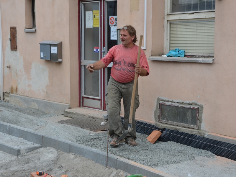 Klienti České pošty, Stavebního úřadu i soukromých firem musely donedávna ke vchodu Domu služeb prodírat v doslova polních podmíkách. Prostranství vedle pošty z velké části zabírala plechová bouda nefungujícího obchodu. Zejména za deště bylo třeba se pro cestu na stavební úřad vybavit pořádnými holínkami. „Plechovou boudu odstranil její majitel po několika jednáních v červnu. Tím se výrazně zvětšil prostor pro parkování klientů pošty,“ vysvětluje první místostarosta obce František Závorka. S výstavbou chodníku kolem budovy začaly technické služby v polovině července. „Museli jsme vyřešit nejprve odvodnění. Letošní stavební zásahy by měly výrazně pomoci i k odvlhčení celé budovy. Pro všechny chodce budou podmínky samozřejmě mnohem příznivější. Konečně bude cesta na poštu i na úřad důstojná a nebude potřeba přeskakovat kaluže,“ shrnuje František Závorka.