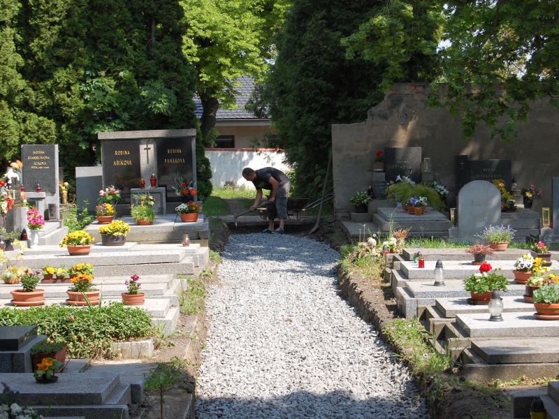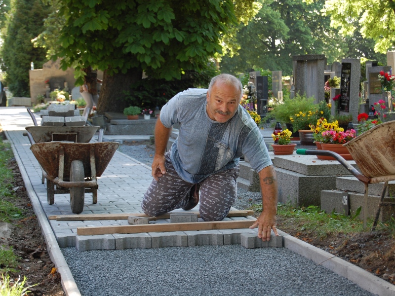 Na líbeznickém hřbitově se podařilo dokončit další metry chodníku.