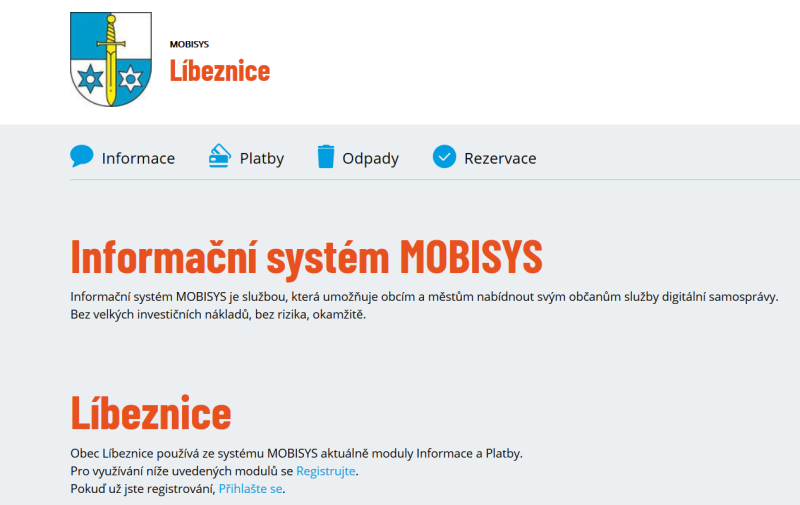 - nebo přes odkaz Portal MOBISYS na úvodní stránce obecního webu www.libeznice.cz