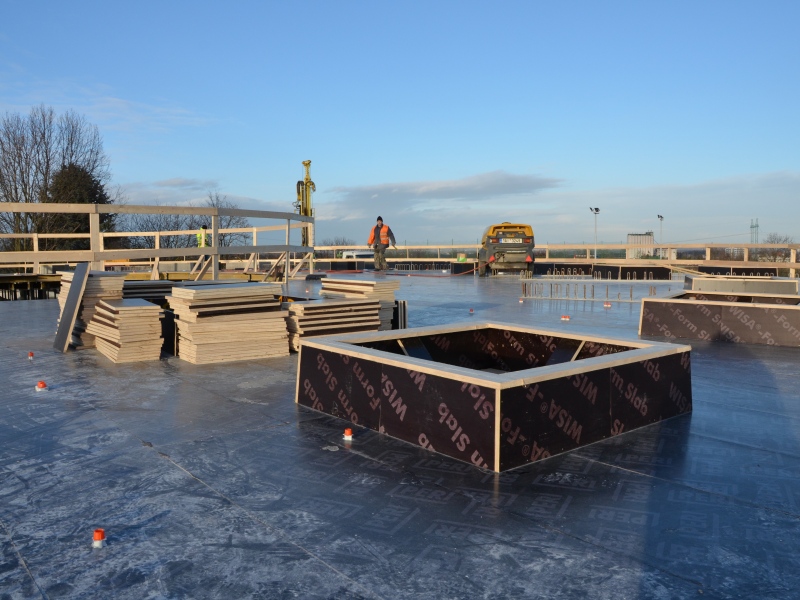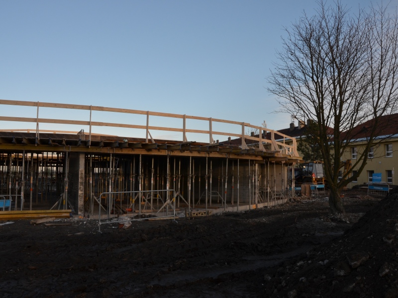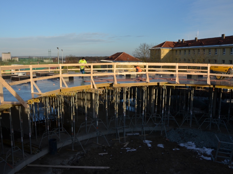 Kruh střechy Rondelu se uzavřel a je vybedněn. Dokončuje se bednění světlíků, kterými bude do každé třídy procházet dostatečné množství denního světla.