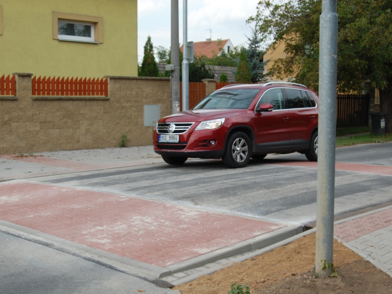 Celá stavba probíhala jen čtyři dny. Kratší doba nebyla možná kvůli tvrdnutí betonu. Od pátečního rána se jezdí po novém přechodu, který má výrazně prodloužené nájezdové hrany. Zároveň se lépe vyřešilo i odvodnění komunikace před přechodem. Použití betonové zámkové dlažby červené barvy by mělo přispět k lepší viditelnosti celého zpomalovacího prvku.
