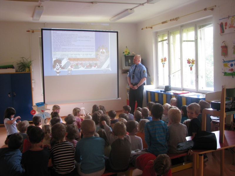 Pro děti byla připravena  interaktivní přednáška o rizicích v silniční dopravě, chůzi po chodníku, po silnici, přecházení silnice, chování v automobilu apod.