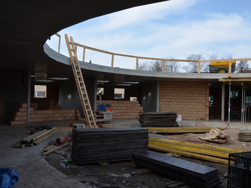 V polovině března mají první třídy Rondelu hotové všechny zdi. "Teď už je jasné, že budou dostatečně prostorné a díky světlíkům v nich bude hodně světla," hodnotí první uzavřené prostory starosta obce Martin Kupka.
