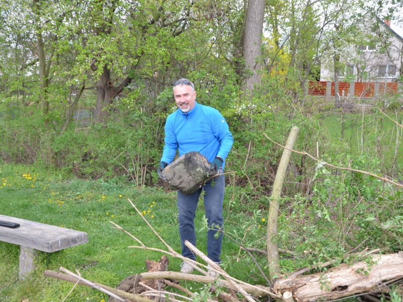Druhá skupinka dobrovolníků operovala v Areálu zdraví. "Zvláštní uznání zaslouží naše paní knihovnice. Vydala se i tam, kam se ostatní neodvážili," říká iniciátorka akce Iva Sieberová. Největší pozornost věnovala tato silná skupina dobrovolníků plevelným křovinám kolem koryta potoka. Velkou lásku k vodě prokázali dva Romanové - Novotný a Ehrenberger. Svorně se brodili přímo v korytě Makůvky. Jejich kapitálním úlovkem nebyli dvoukiloví pstruzi, ale například náhrobní kámen pana Novotného z Panenských Břežan z 19. století, pořádný kus modrého betonu a další pozoruhodné kousky. "Našli jsme i jedny dámské kalhotky," připojil s pozdviženým obočím Roman Novotný.