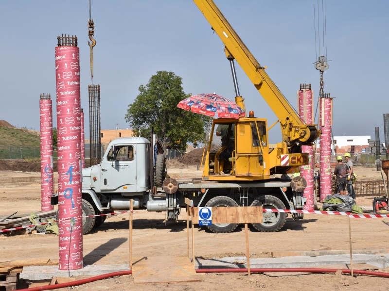 Po měsíci a půl intenzivní práce jsou na stavbě školy hotové všechny piloty, které tvoří hlavní prvek založení stavby. Budova bude stát na celkem 106 pilotách sahajících do hloubky 6 až 10 metrů. Na pilotách začaly zároveň vyrůstat sloupy, které ponesou strop.Stavební dělníci začali zároveň mezi vybetonovanými pilíři šalovat stropní desku. Ve zbývající části stavby se zároveň betonují základové pasy a čtveřice nosných zdí. Skeletová konstrukce celého objektu umožní do budoucna případnou snadnou proměnu vnitřní dispozice.