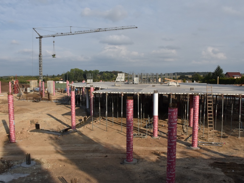V dalších deseti dnech by měly být dokončeny všechny sloupy a vyšalovaná stropní deska. Zároveň začnou práce na armované výztuži stropní desky. Její první segmenty budou vybetonovány v prví polovině října. Souběžně začnou práce na přípojkách technických sítí. Při západní straně budoucího objektu vznikají záporové zdi.