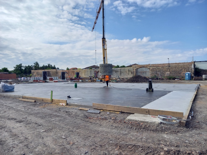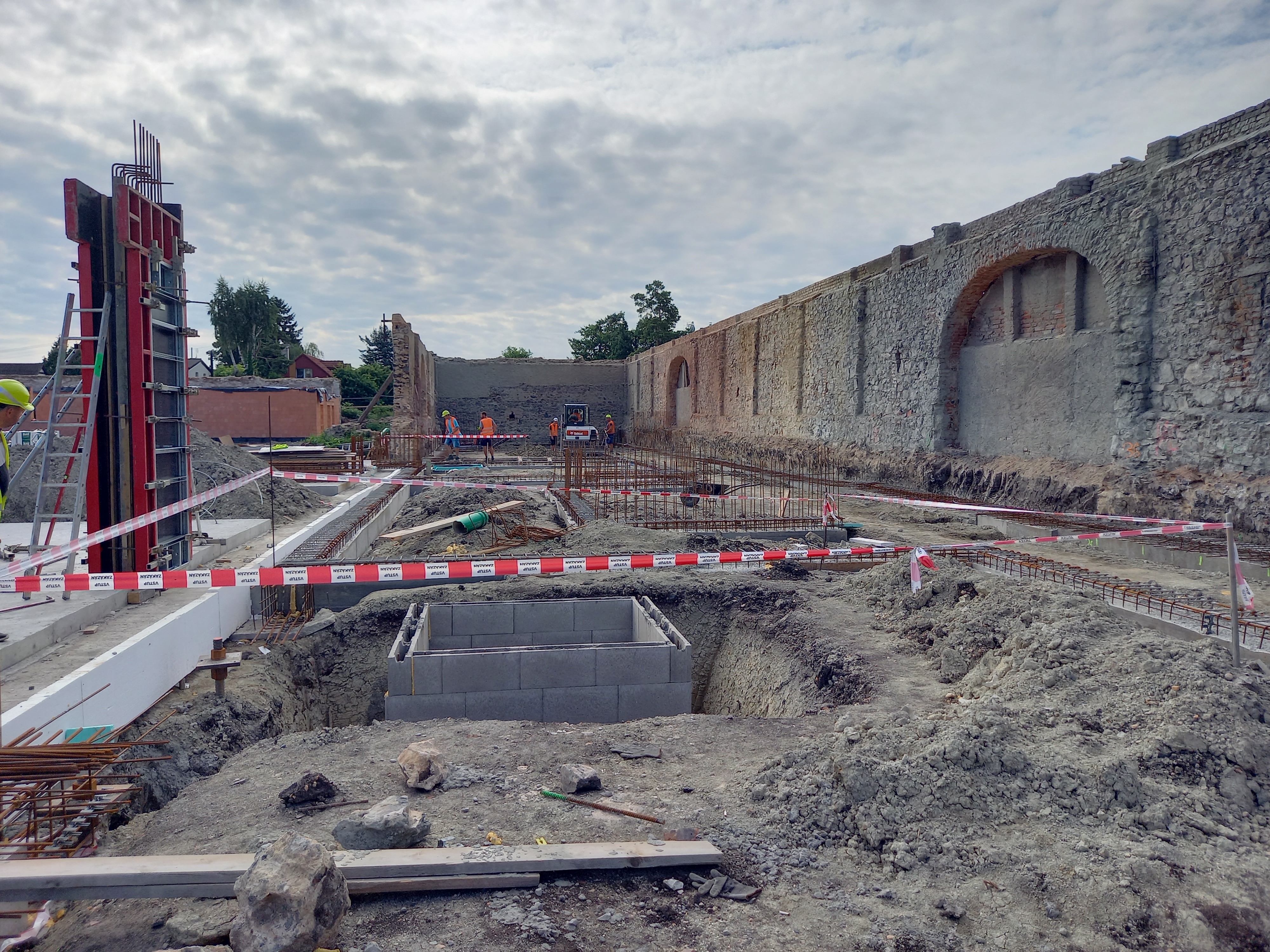 Dnes proběhl pravidelný kontrolní den na stavbě svazkové Základní školy Pod Beckovem v Bašti. Pro objekt tělocvičny byl položen podkladový beton a začíná zdění v propojovacích traktech mezi hlavní budovou a budovou pro první stupeň.