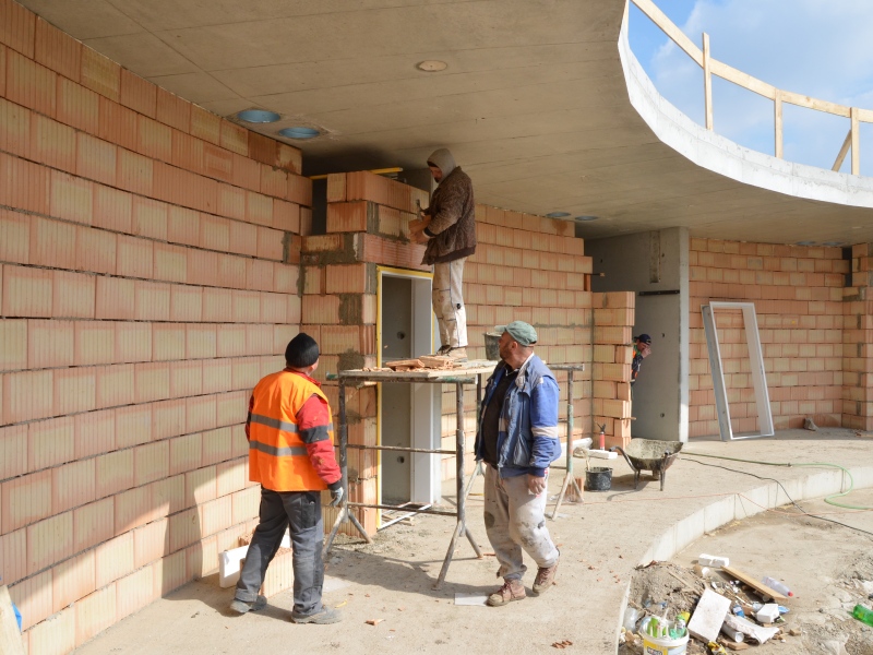 Do konce března budou všechny vnější i vnitřní zdi Rondelu dokončené. Zbývá už jen pár cihel.