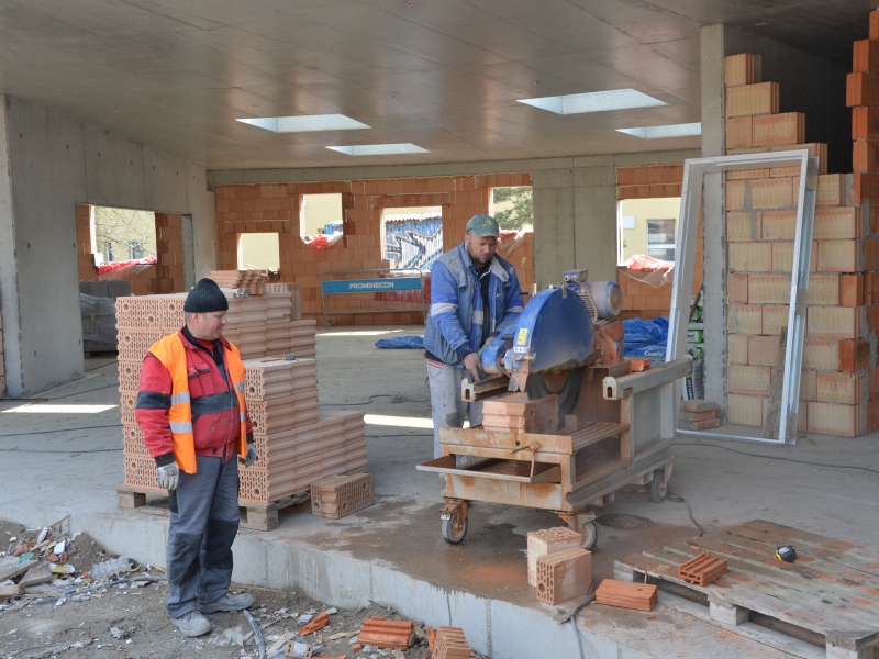 Poslední březnové dny patří zednickým pracem na vnitřních příčkách budovy. Do stavebních otvorů se už osazují bezfalcové zárubně všech dveří. Všechny třídy dostávají svůj finální tvar. "Těšil jsem se, až uvidím všechny čtyři zdi ve třídách. Přece jen jsem se trochu obával, jak vnitřní prostor bude působit. Je to dobré. Třídy jsou dostatečně prostorné i svétlé," uzavírá autor projektu architekt Adam Halíř.