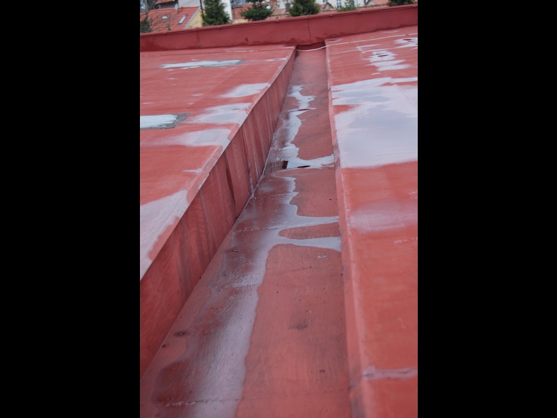 Celková plocha střechy činí 557 m2, bez zahrnutí překryvů klempířských prvků a svislých oplechovaných ploch centrálního odtokového žlabu.