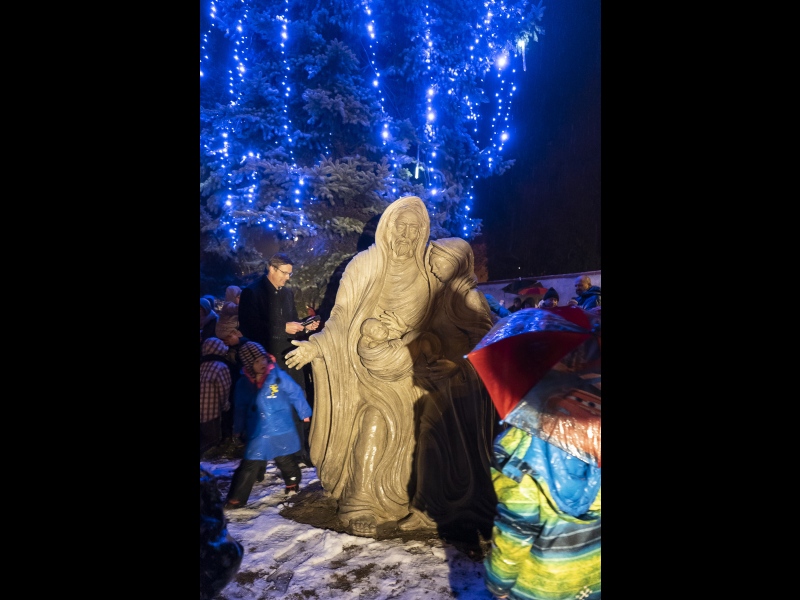 Pak následovalo rozsvícení stromu a především velká adventní premiéra – odhalení nového betléma, který pro Líbeznice vytvořil místní výtvarník Miro Jakubčík. Sám své nové dílo před samotným odhalením komentoval: „Nechtěl jsem dělat obvyklý betlém s jesličkami a zvířátky. Je to prostá věc zaměřená na samotnou podstatu vánočního příběhu. Vedení obce se na mně s tímto zadáním obrátilo už před několika lety. Jsem moc rád, že se to podařilo letos dotáhnout do konce.“