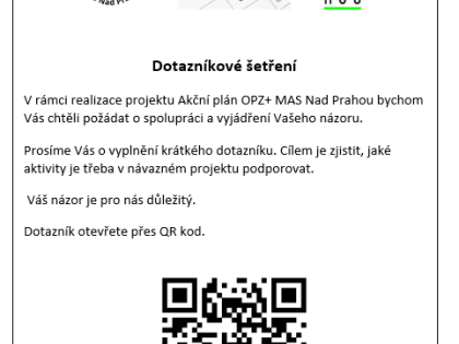 Prosíme o vyplnění krátkého dotazníku pro MAS Nad Prahou, jehož cílem je zjistit aktuální potřeby občanů v sociální oblasti. Dotazník naleznete v příloze.