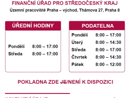 Finanční úřad pro Středočeský kraj oznamuje provozní dobu během letních prázdnin.