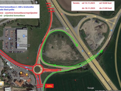 Uzavírka kruhového objezdu u Zdib a sjezdu z dálnice D8