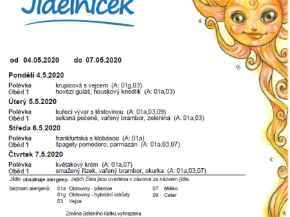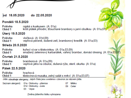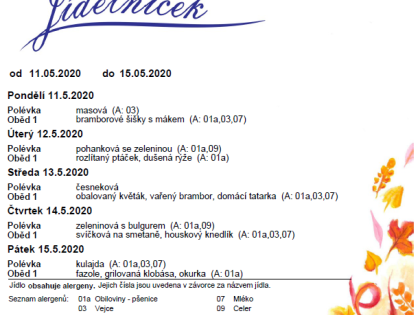 Jídelníček na týden 11. - 15. května 2020